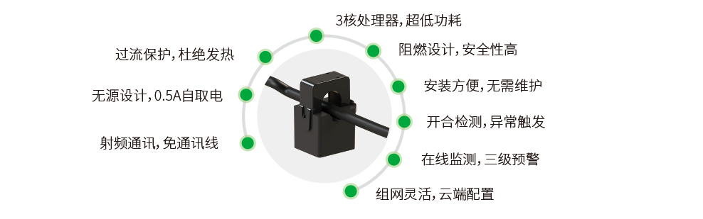 術(shù)而設(shè)計(jì)的開(kāi)合式無(wú)線電流互感器。傳感器0.5A超低電流感應(yīng)取電,可實(shí)現(xiàn)線路電流