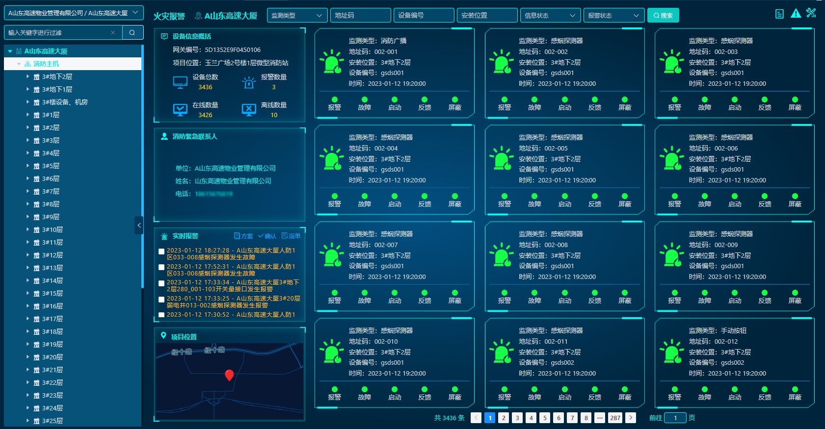 實(shí)時(shí)采集聯(lián)網(wǎng)建筑物內(nèi)前端感知設(shè)備(如:感煙、感溫、可燃?xì)怏w等)的報(bào)警信息和運(yùn)行狀態(tài)信息,隨時(shí)隨地查看傳感器信息,及時(shí)發(fā)現(xiàn)前端消防設(shè)施存在的各種故障及安全隱患。